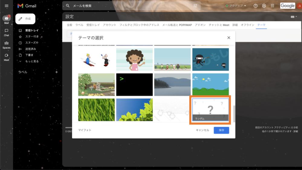 Gmailの背景固定されてますか?私は毎回同じ背景だと面白くないので、ランダム設定にしています。