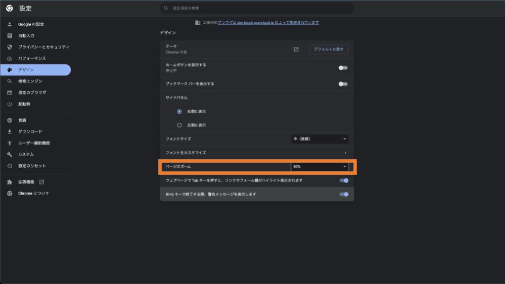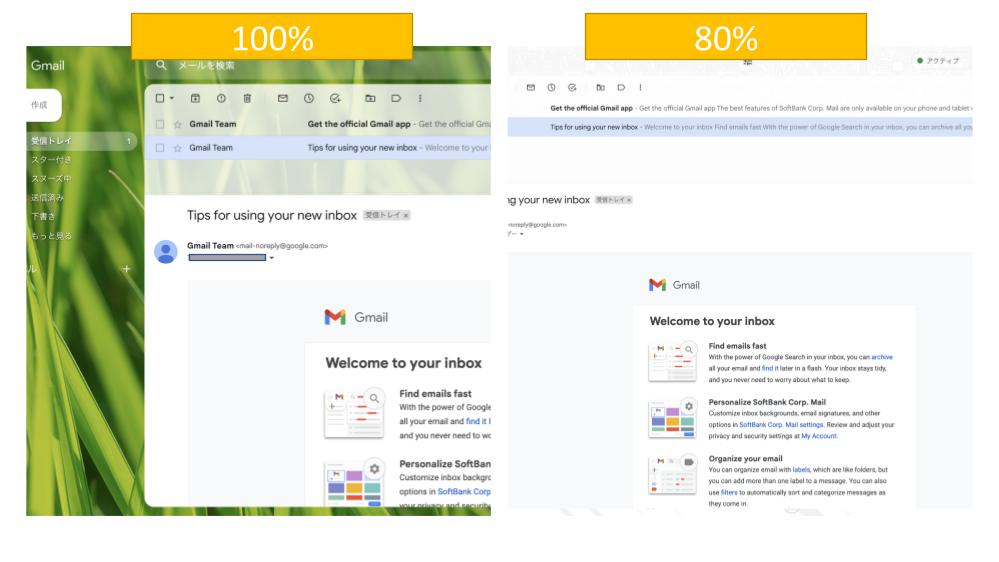 Chromeの設定→デザイン→ ページのズームを80%にする