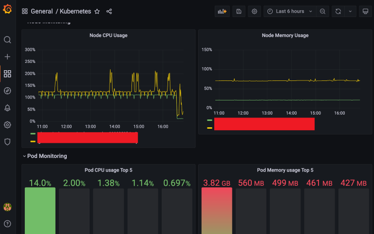 上位5個CPU利用率が高いPod:topk(5, rate(kubernetes_io:container_cpu_core_usage_time[1m]) * 100)