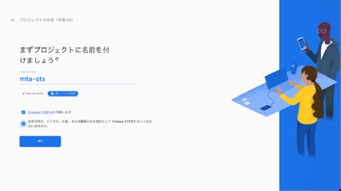 2. 任意のプロジェクト名を記載します。こちらのプロジェクト名はURLとは別のものになりますが、わかりやすくmta-stsとしました。