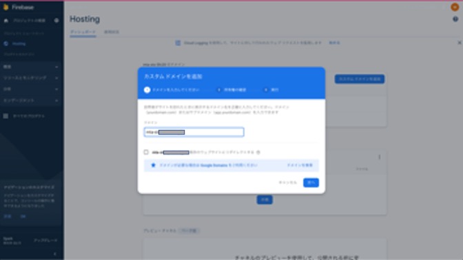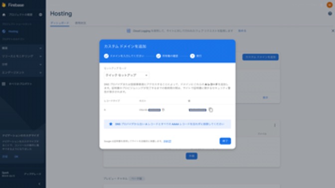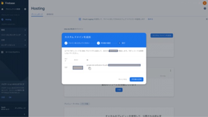 9. 画面の指示に従って、ドメイン名の追加、所有権確認を実施します。