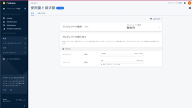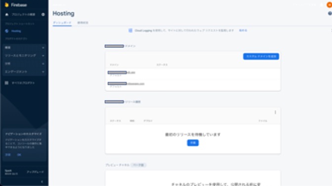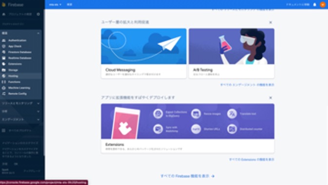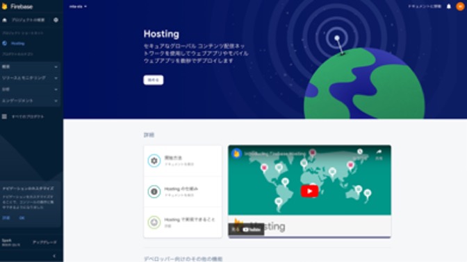 4. 次にFirebase Hostingの設定をします。左メニュー内にあるHostingを選択します。