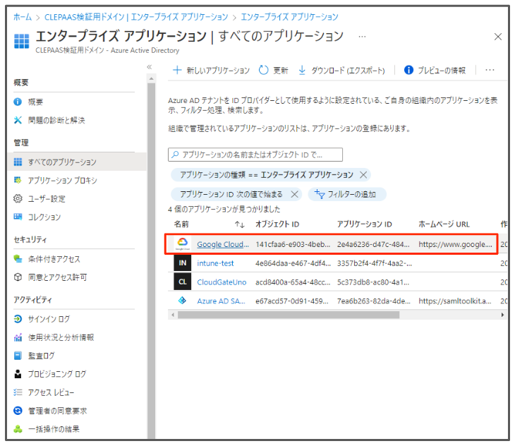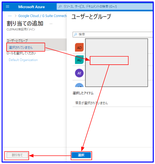 SSOのテストを実施するために、ユーザーへアプリケーションの割り当てを行います。