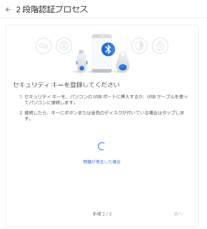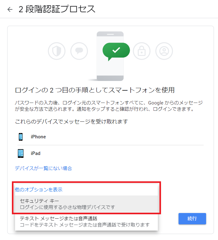 ③二段階認証プロセスの選択で、【他のオプションを表示】からセキュリティーキーを選択