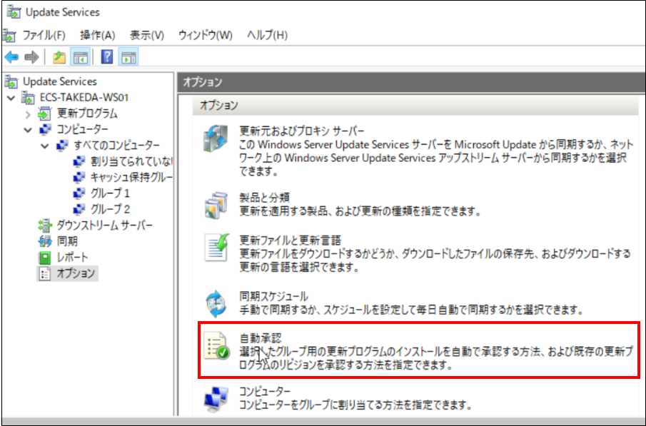 グループ1とグループ2は手動承認となるため、任意のタイミングでWSUS管理コンソールから更新プログラムの「インストール承認」を手動で実施することで更新プログラムがPCに適用されます。