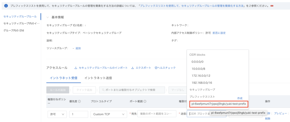 今回はAlibaba Cloudのセキュリティグループで設定しているCIDRブロックの管理をシンプルにする機能の「Prefix list」について紹介します。