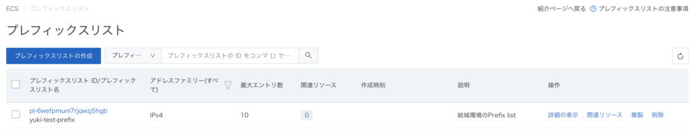 Prefix listの作成が完了すると作成したPrefix listが表示されます。