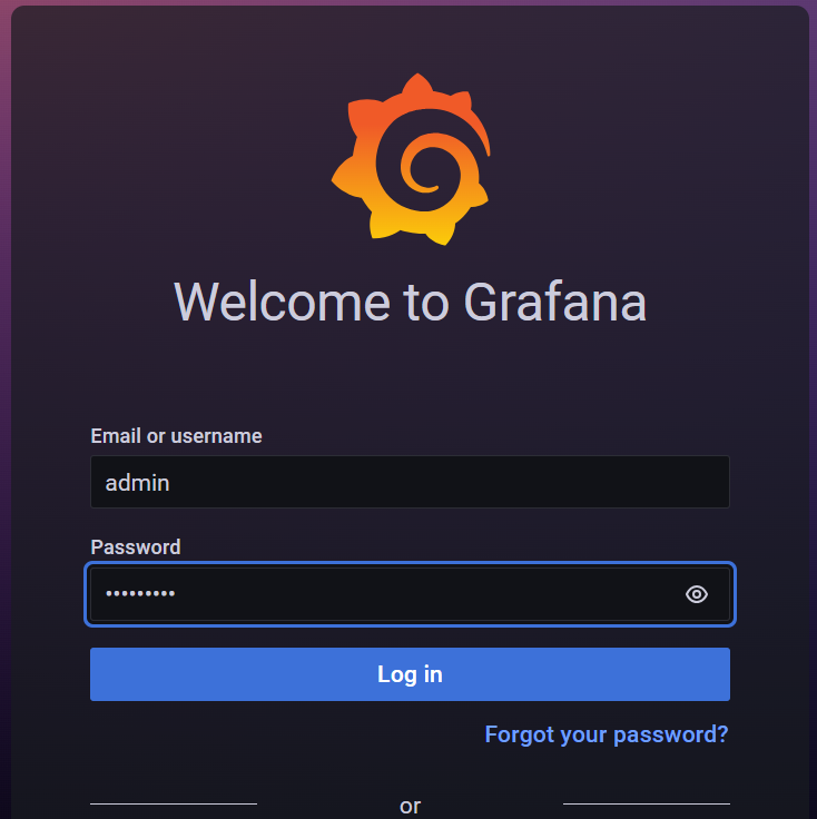 1-7 ) Grafanaのログイン画面が表示されるので、ユーザ名「Admin」、設定したパスワードを入力し、ログインができることを確認します。