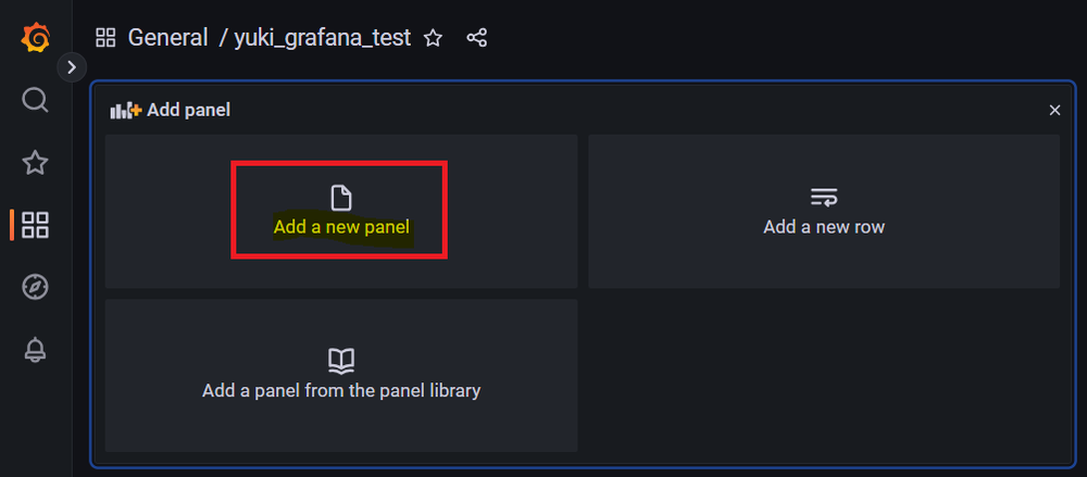 2-4 ) 「Add a new panel」をクリックし、ダッシュボードに追加します。