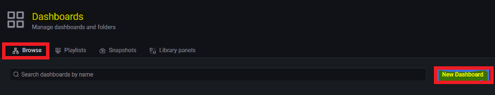 2-3 ) Dashboardsを開き、「New Dashboard」をクリックし、ダッシュボードの作成を行います。