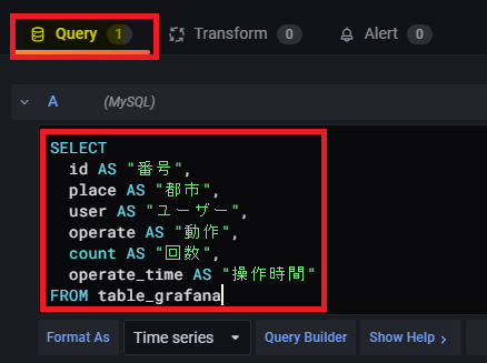 ※事前準備でサンプルコードを使用している場合は以下、クエリ文をご参考ください。