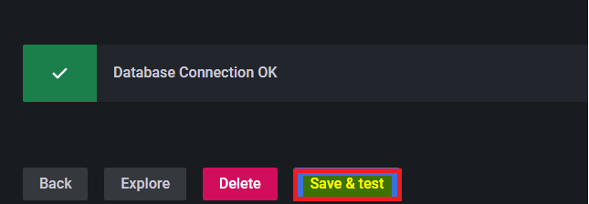 2-2 ) 以下画像で黄色くハイライトされている設定値を入力し、「Save & test」をクリックします。「Database Connection OK」と表示されることを確認します。