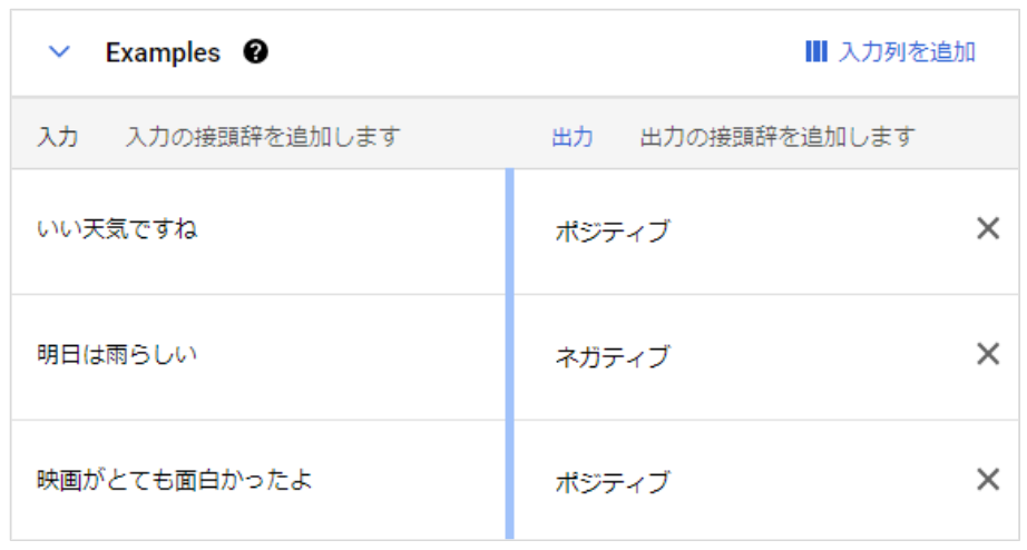 では今回は、テキストプロンプトの構造化インターフェースのExamples を利用し感情分析をしてみます。
