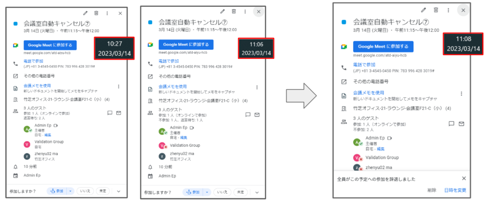 本記事では、「Google Calender 全員が辞退したスケジュールの会議室 自動キャンセル」という新機能の発動及び不発動条件を検証を実施しました。