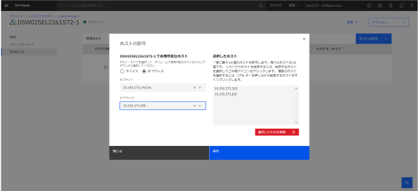 ・作成したストレージにアクセスできるサーバを指定(許可ホスト設定)してストレージの設定は完了
