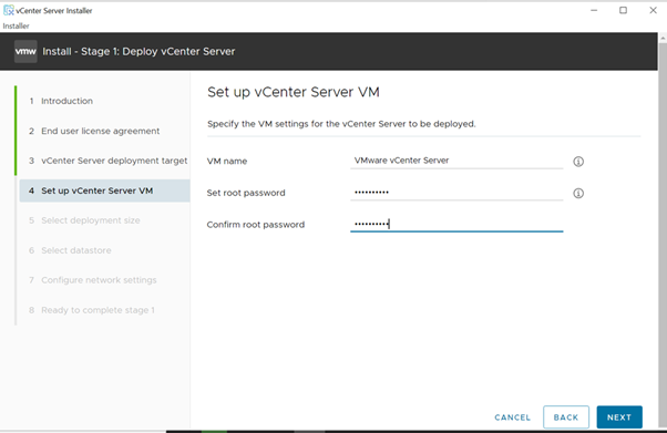 ・vCSAのVM名、ユーザー名、パスワードの設定