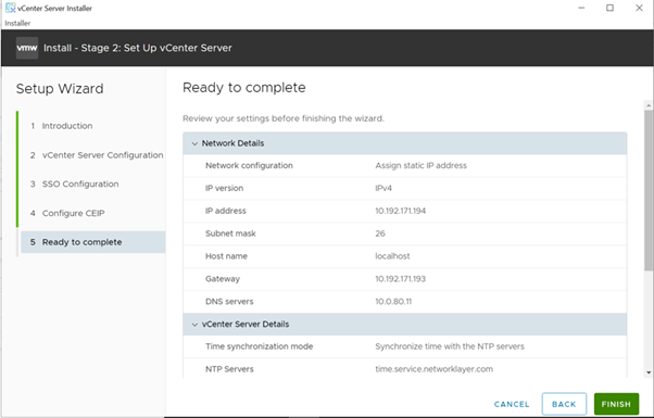 ・Ready to completeの画面にて設定を確認して、FINISHをクリック