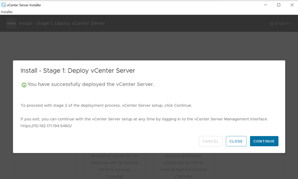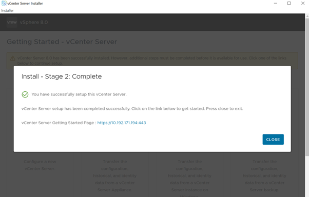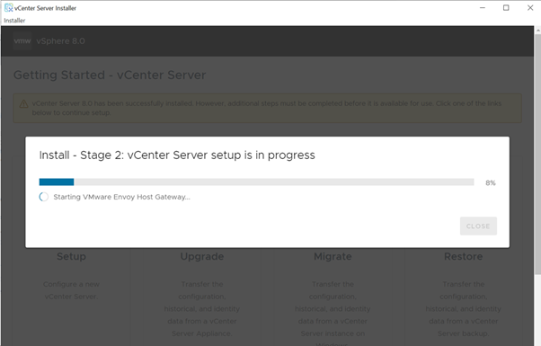 ・vCSAのインストーラーが起動するので画面に沿ってインストールする