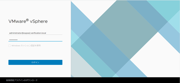 ・ブラウザーを起動して、設定したvCSAのIPアドレスへ接続し、vSphere Clientの起動をクリックし、vSphere Cleintにログイン