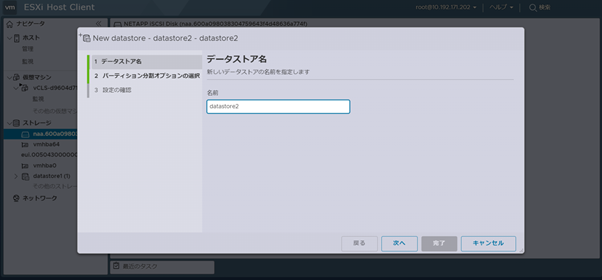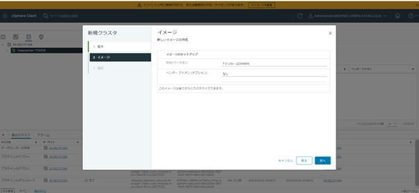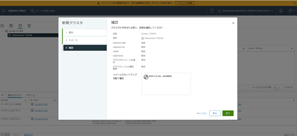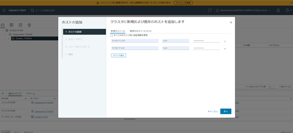 ・必要なライセンスの確認(ESXi)と選択(vCenter等)、データセンターの選択