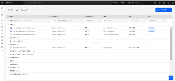 ・オーダー後、リソースリストの「ストレージ」で作成完了していることを確認