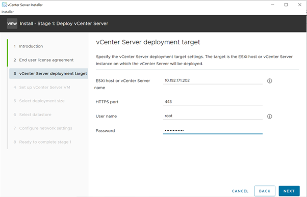 ・導入するサーバの指定(VSSの物理サーバとユーザー名、パスワードを指定)