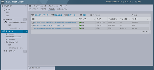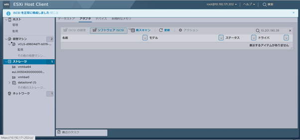 *ホストIQNがVMware Host Clientからは変更できなかったのでESXiのCLIにて変更しました。(IBMクラウドのDocsの手順では変更可能とありますが、今回はできなかったのでCLIで変更しました)