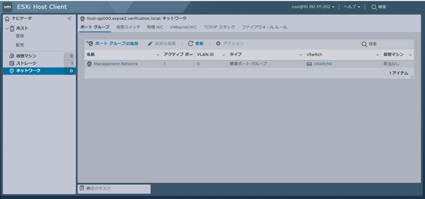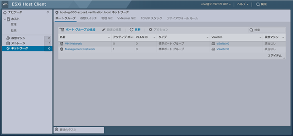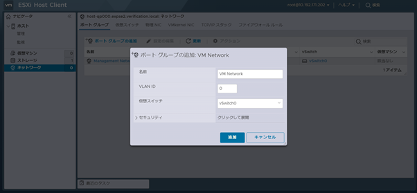 ・VSSの物理サーバにVMware Host Clientでログインしポートグループの追加を開始
