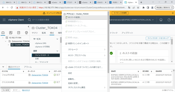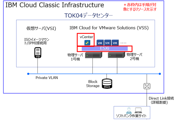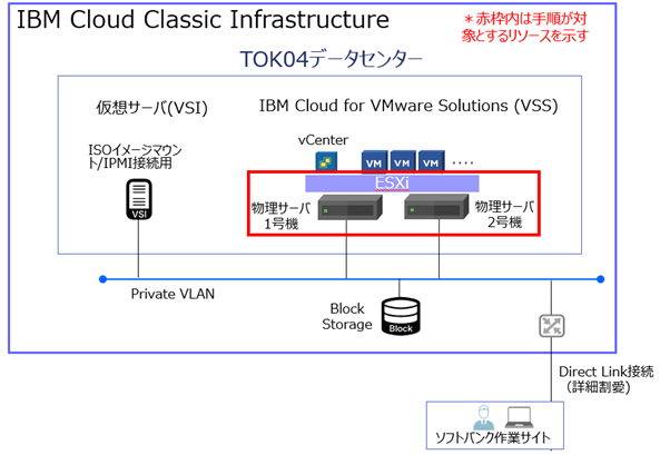 ・IBM Cloudの東京リージョンのTOK04データセンターに、VSSを用いてESXiクラスタ環境を構築しました。