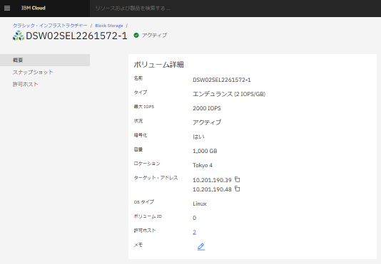 2.ストレージ導入・設定(IBM Cloud Block Storageのオーダーと各種設定)