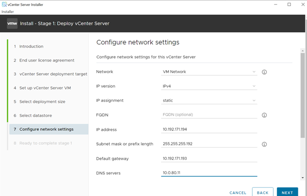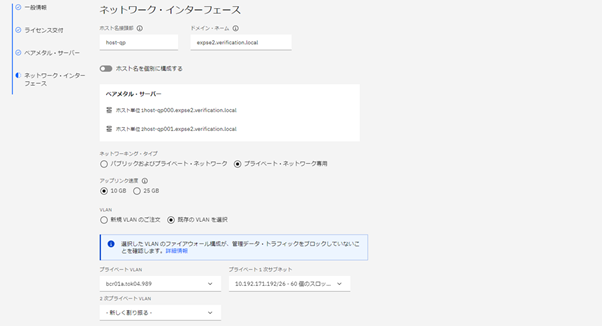 ・ホスト名やドメイン・ネームを設定とネットワーキング・タイプ、アップリンク速度、VLANを選択