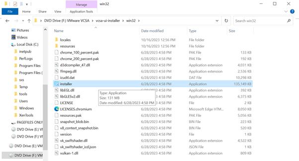 仮想サーバのエクスプローラーにてinstallerをダブルクリックして起動