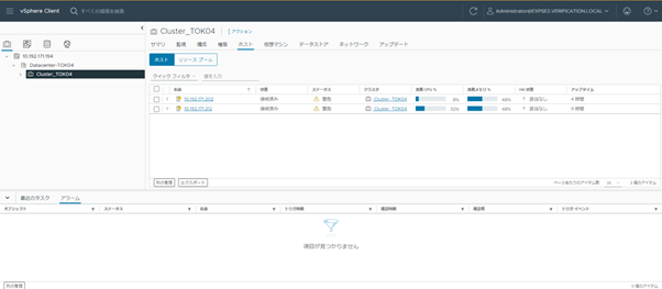 ・作成したクラスタを選択し、アクションをクリック、ホストの追加を選択
