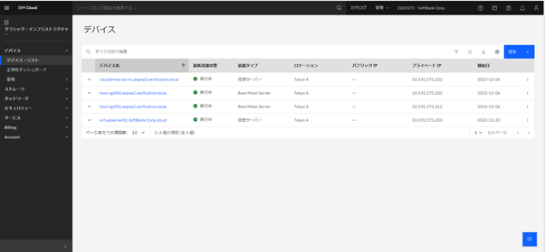 ・オーダー後、デバイスリストにて、2台のESXi用物理サーバのプロビジョニング完了の確認(上から二行目と三行目です)