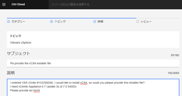vCSAのインストーラーはIBM CloudのポータルからダウンロードできないのでIBM Cloudのサポート窓口にCaseを通じて依頼しました。