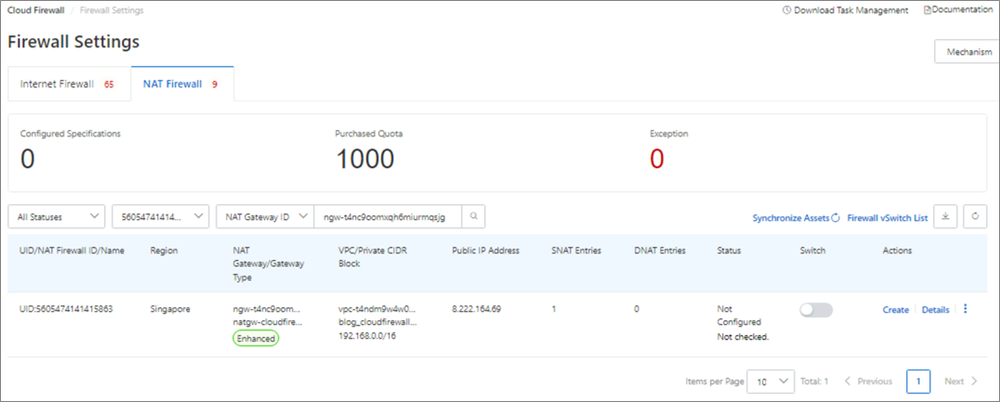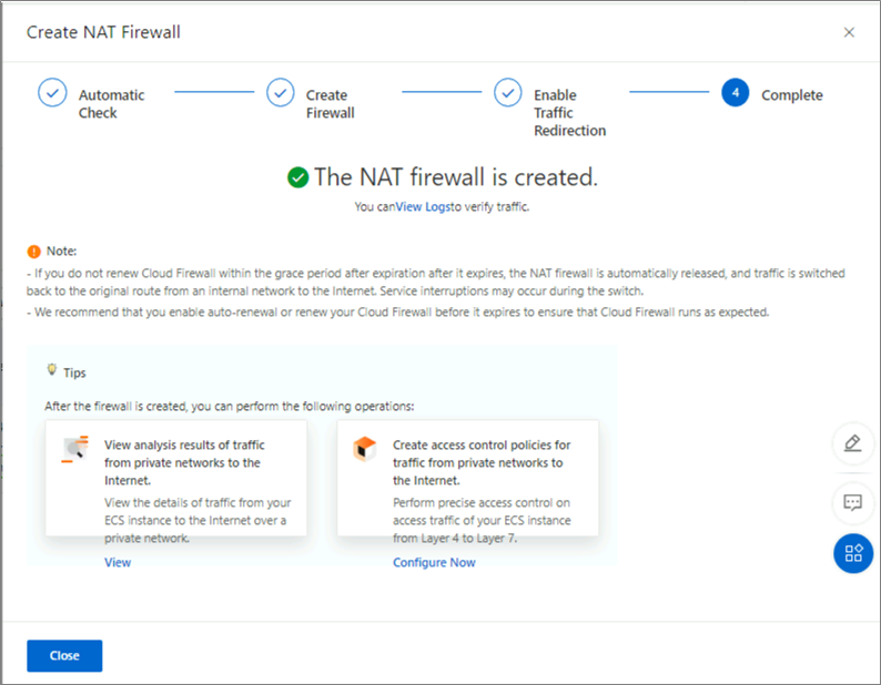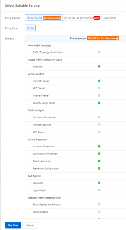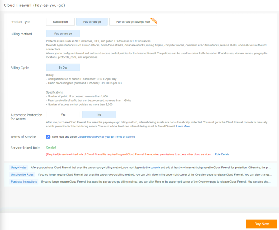 Terms of Service:☑ I have read and agree Cloud Firewall(Pay-as-you-go)Terms of Service