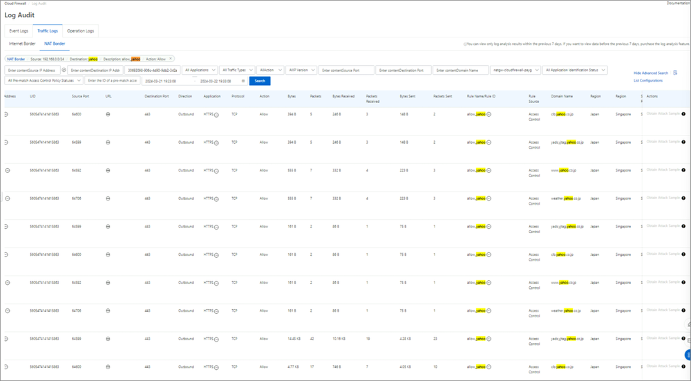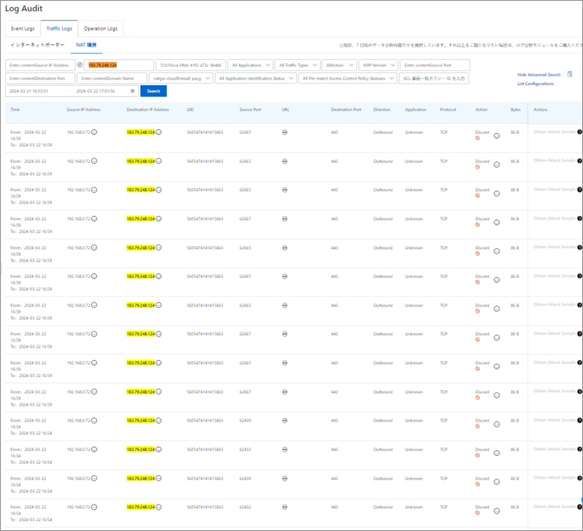 Log Audit画面に遷移しログを確認し該当の通信をログを確認します