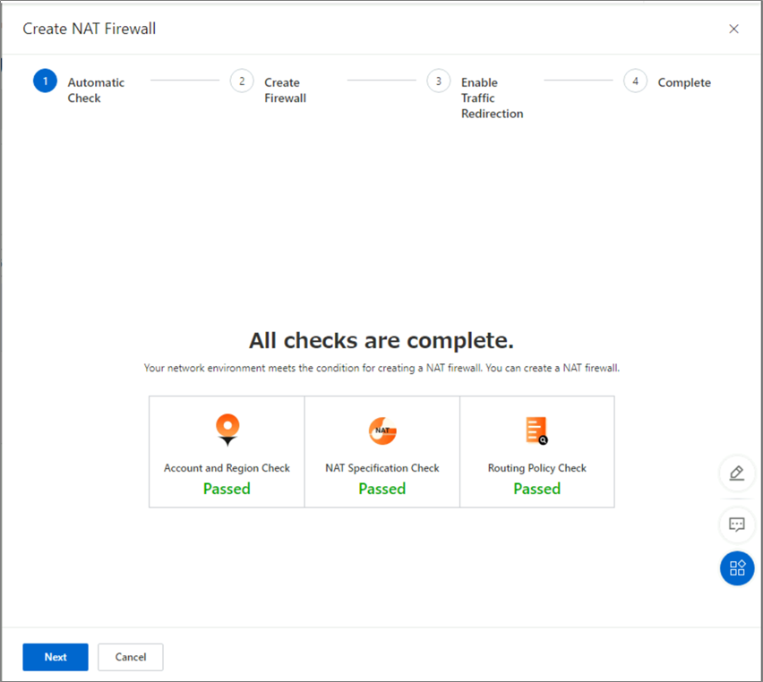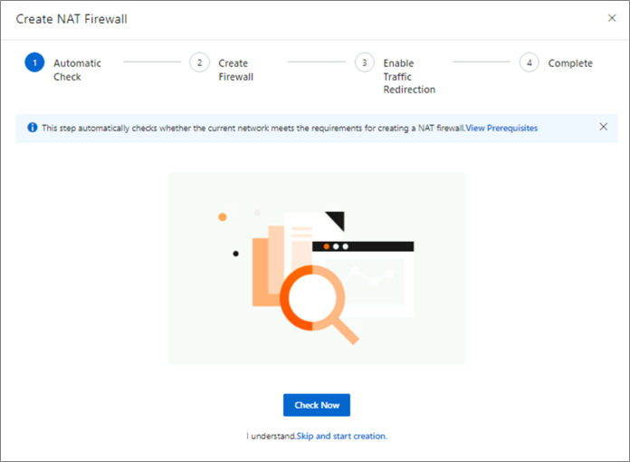 ⑦Create NAT Firewall ①Automatic Checkフェーズ画面に遷移し【Check Now】をクリックします。