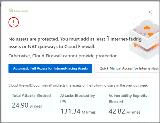 ④Cloud Firewallコンソールにアクセスし、Automatic Protection for Assets:Noを選択しているので下記画面が表示されます。