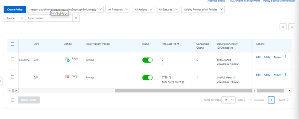 AlibabaCloudがマネージドで提供するSaaS型のFirewallサービスになります。