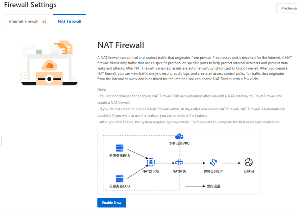 NAT Firewall画面に遷移し画面中部の【Enable Now】をクリックしNat Firewall機能を有効化します。