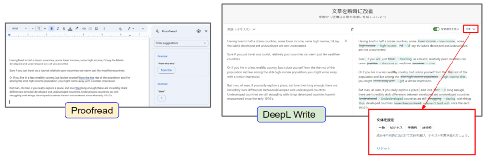 現状、英語初心者に対して Proofred の校正結果はどの文体で校正されるか不明なため、利用シーンに応じて文体が正しいか確認する必要があります。(一般、ビジネス、学術的、技術的シチュエーションによって分けて利用する必要があります)