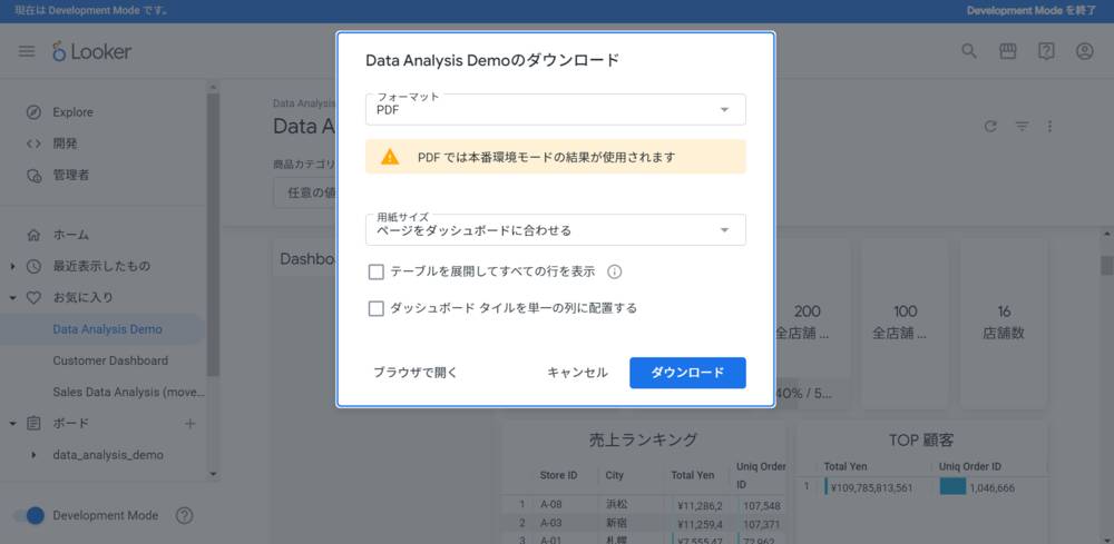 Looker ではフォーマットや用紙サイズを選択することもできます。