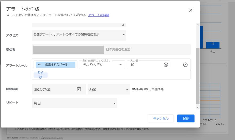 Looker Studio Pro ではアクセスという設定項目にてアラート先の対象をレポートの閲覧者かアラートのオーナーに設定できます。