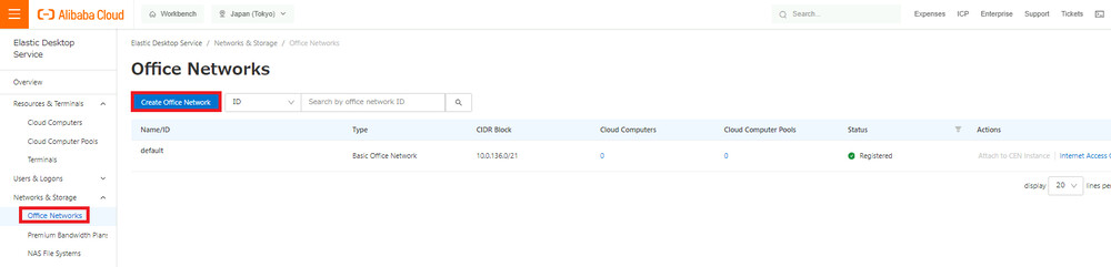 ②Networks & Storage → Office Networks → Create Office Networkの順にクリックします。