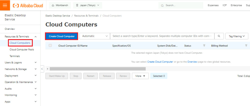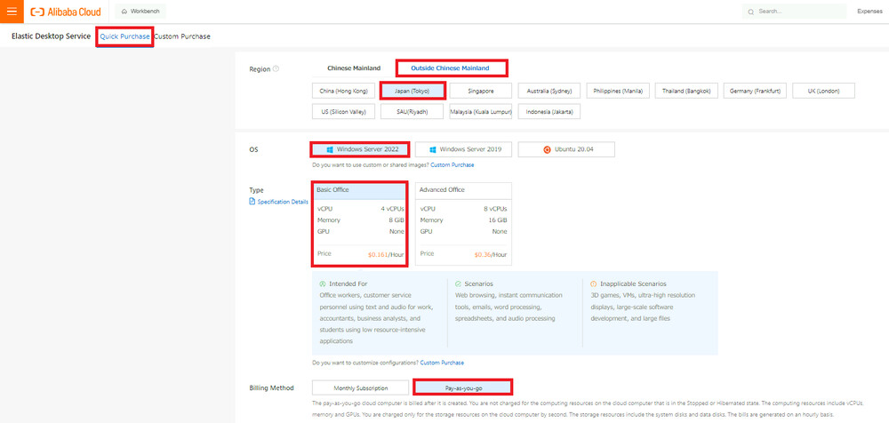 クラウドデスクトップはAlibaba Cloudコンソールでシンプルに作成できます。作成手順は以下で説明します。
