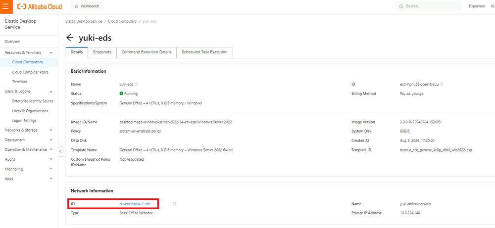 ①Alibaba CloudのEDSコンソールにアクセスします。