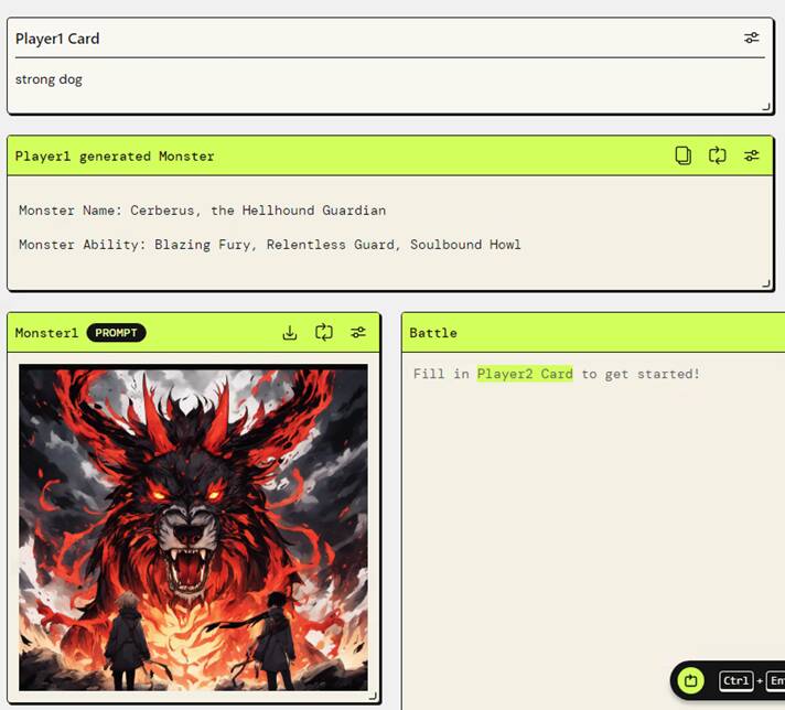 カードバトルに少しでも迫力を加えるため、モンスターカード生成の際には「A cool name(かっこいい名前)」といった生成結果を最大化できるようなプロンプトを一言付け加える工夫をしました。