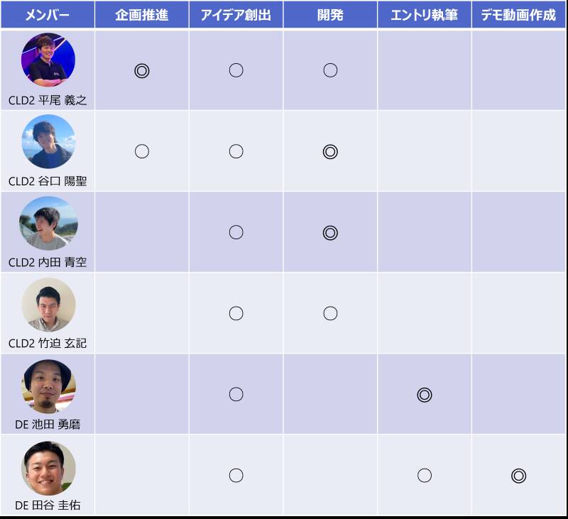 全員でアイデアを出し合いながら、構築や開発が得意なCLD2が開発を推進し、的確なアンサーで応えることに長けているDEがエントリ項目の執筆を主に担当しました。