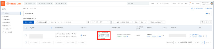 ※「スキーマ同期」「完全データ同期」「完全検証」が完了している場合は、初回の同期が完了しており、継続的に増分データの同期が行われます。